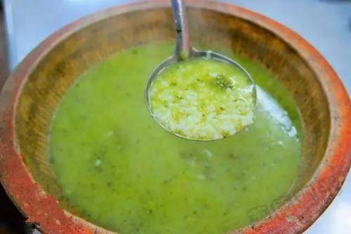 当地农村,或联络感情,或招待宾朋,或婚嫁喜庆,擂茶粥是必不可少的礼待,俗称“半餐”。茶粥是用陶制器具将山茶叶磨成粉末状,再用冷开水、花生油调成浆,后用白粥调制的一种粥。