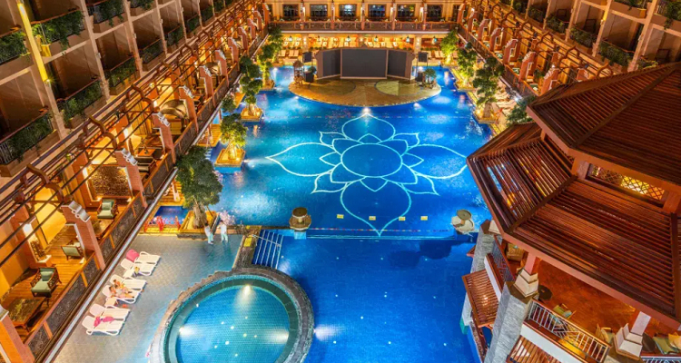 这里是以东南亚风情为主题精心打造的都市水疗度假酒店。客房融合了现代泰式建筑风格,且均配置观景阳台。干湿分离的浴室中配有德国卫浴产品及独立液晶电视。部分套房还有冲浪按摩浴缸及独立湿蒸房。